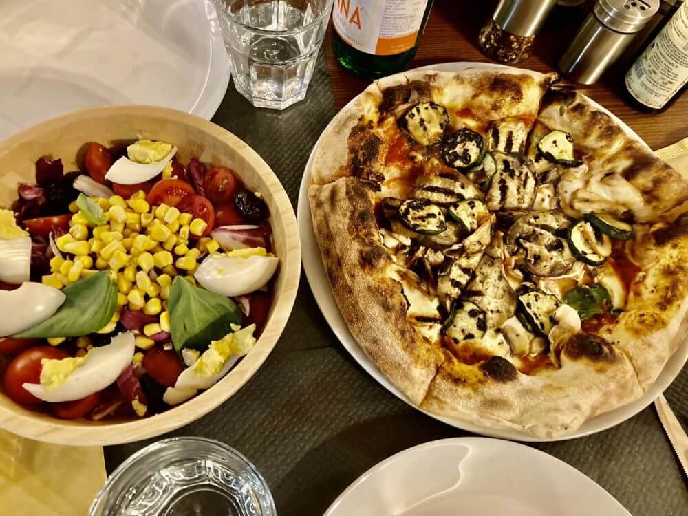 宿の近く、イタリアで賞を取ったピザ職人のピザリアへ。ベジピザ🍕とサラダ🥗でディナー。地元の人で賑わっていて、とっても美味しかったです😊