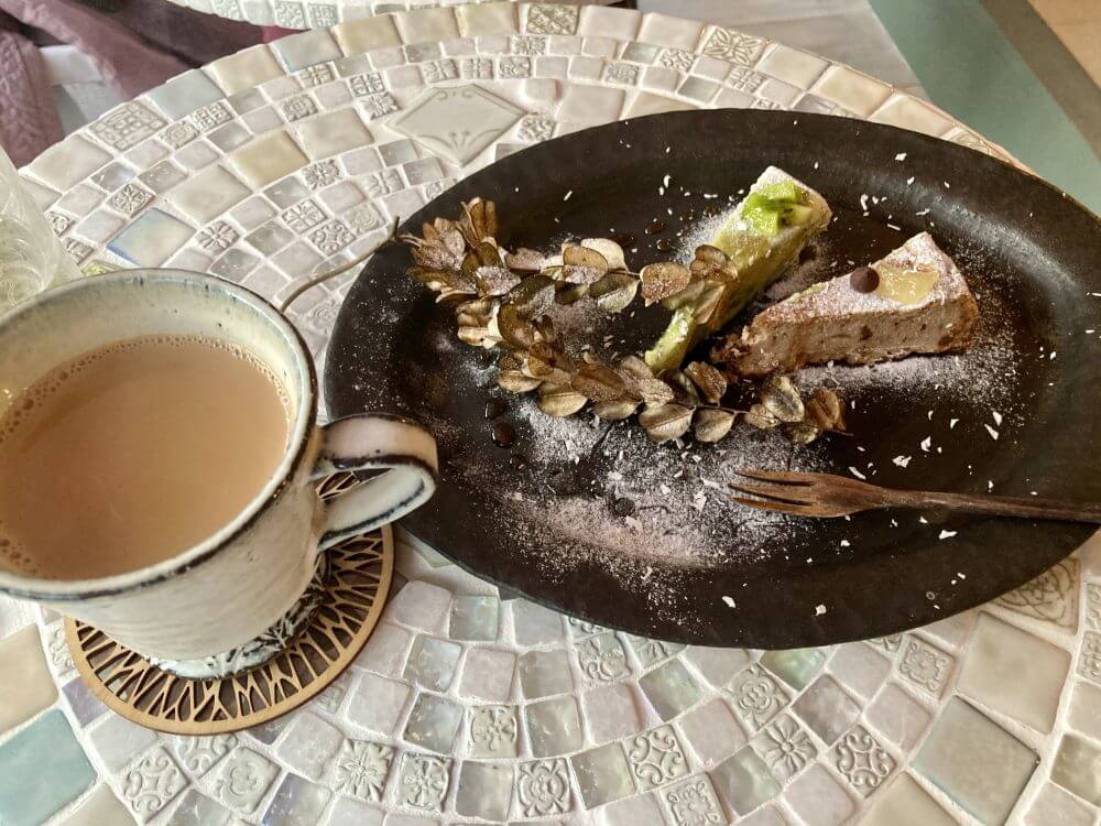 女神スープの次の第2ラウンドは、豆乳チャイとロースイーツ。甘酒の甘さや自然素材で体もハートも癒されます💖