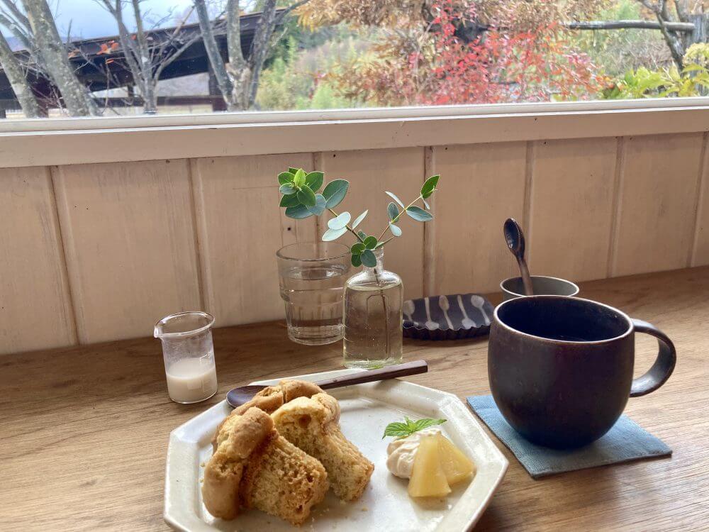 この日のカフェは、七曜日さん。ここも営業日が極めて少なく、でもミラクルなタイミングで、やっていて嬉しい!甲斐駒ヶ岳がよく見えるとのことですが、曇っていて、近くの山は見えましたが、高い山々は雲にお隠れになっていらっしゃいます。