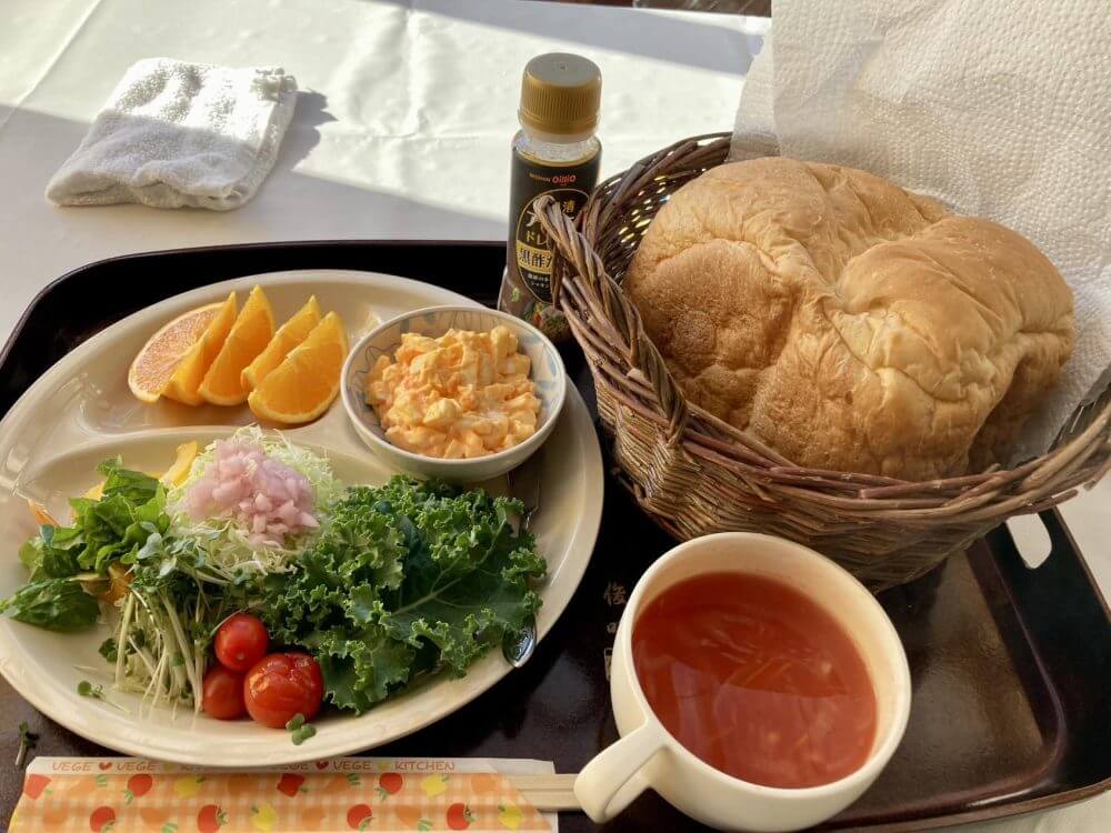 秩父の象徴的な山、武甲山を見ながら心のこもった幸せなベジタリアンの朝食💖を頂きます。ケールやトマトの酢漬けも自家製。料理は作る人の愛が入りますね💖😊🌈
