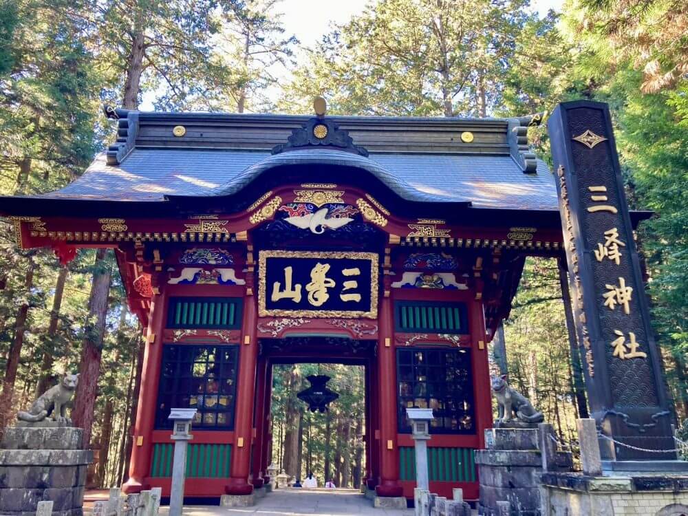 三峯神社にようやく到着!狛犬でなくて、お犬さま(狼)🐺が祀られています。