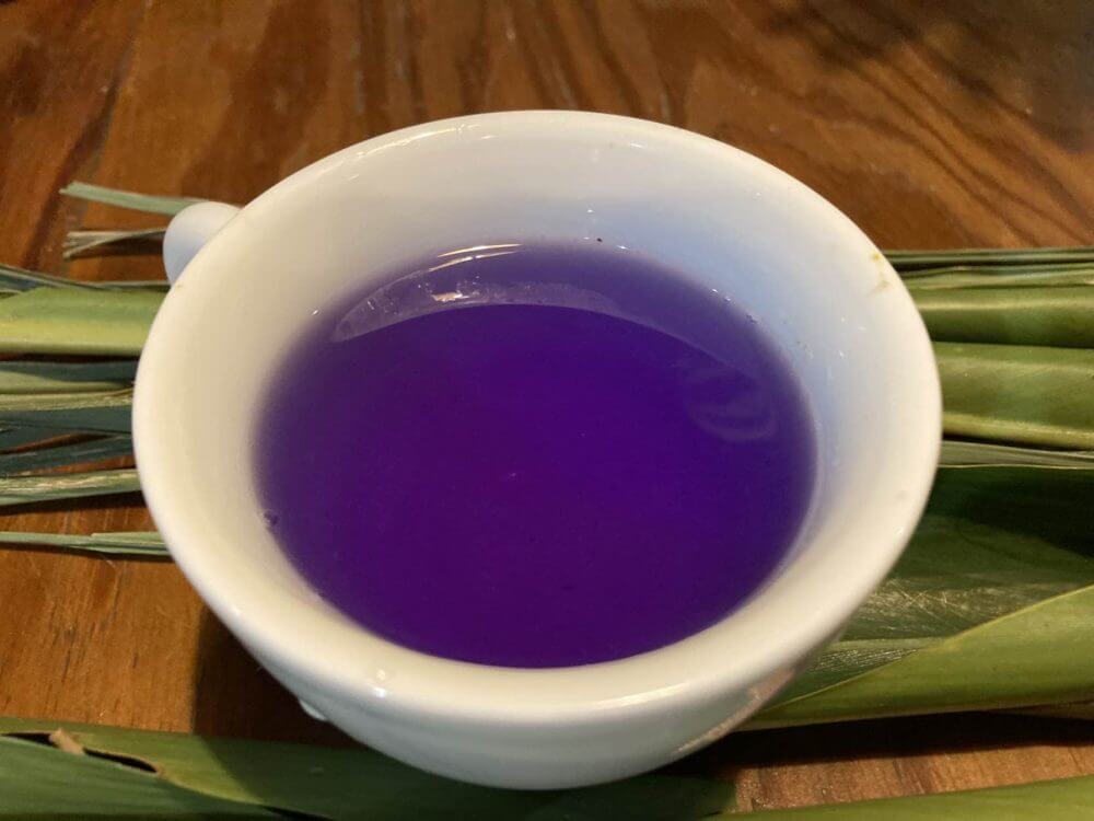 バタフライピーのお花の青色🩵が南国フルーツのスターフルーツ⭐️を浮かべると紫になる💜マジック!