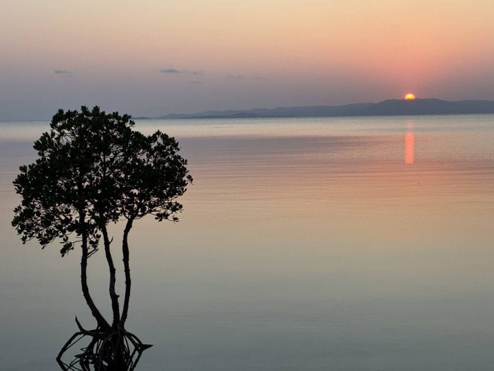夕日の美しい名蔵湾の1本マングローブで、バッチリタイミング良くサンセットを見ることができて⭐️ミラクル!