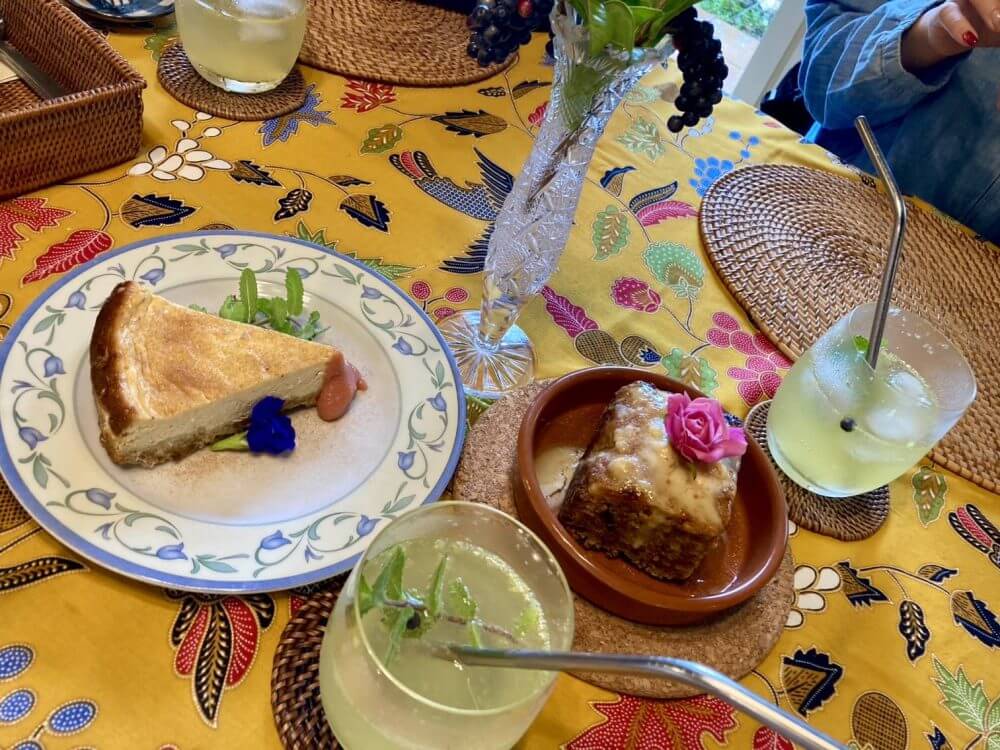 お食事もスイーツ、ドリンク全てこだわりが感じられます。シナモンチーズケーキ、バラ🌹付きヴィーガンチーズケーキ食べて女子度アップ💕