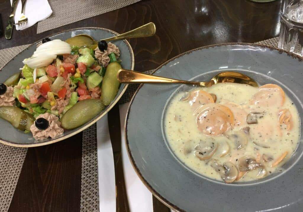 夕食は地元の人しか行かないような、住宅地にあるレストランへ。サツマイモのラビオリと新鮮なサラダ。