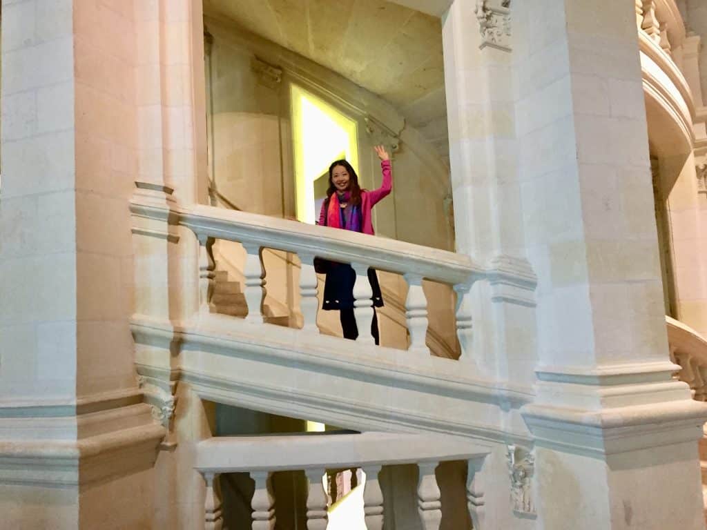 Bij Chateau de Chambord. De beroemde dubbele, spiraalvormige trap van Leonardo de Vinci.