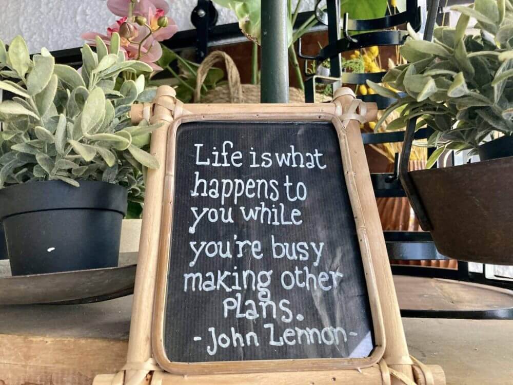 In de tuin van dit café vond ik een beroemd gezegde van John Lennon: “Life is what happen to you while you`re busy making other plans.✨